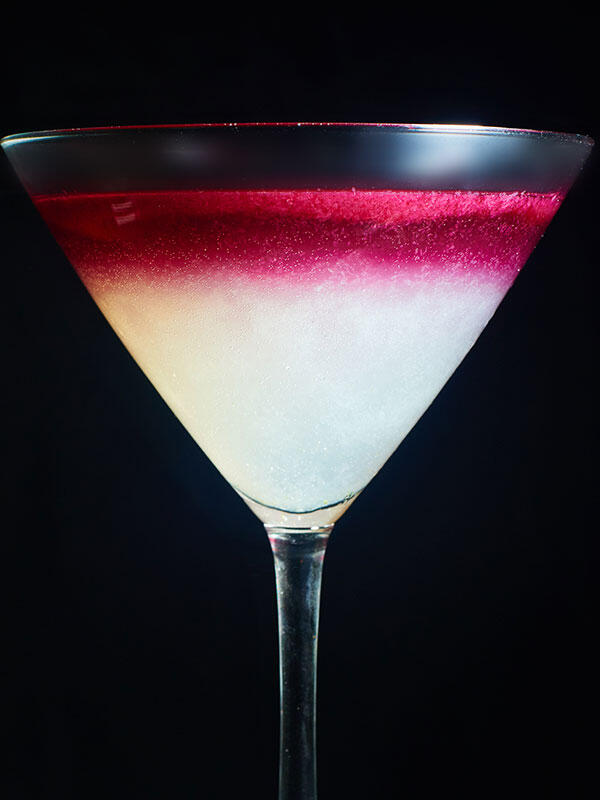 Gyr Abanian black tea with raspberries, blueberries, pineapple, orange, and black currant syrup, topped with edible wildflowers